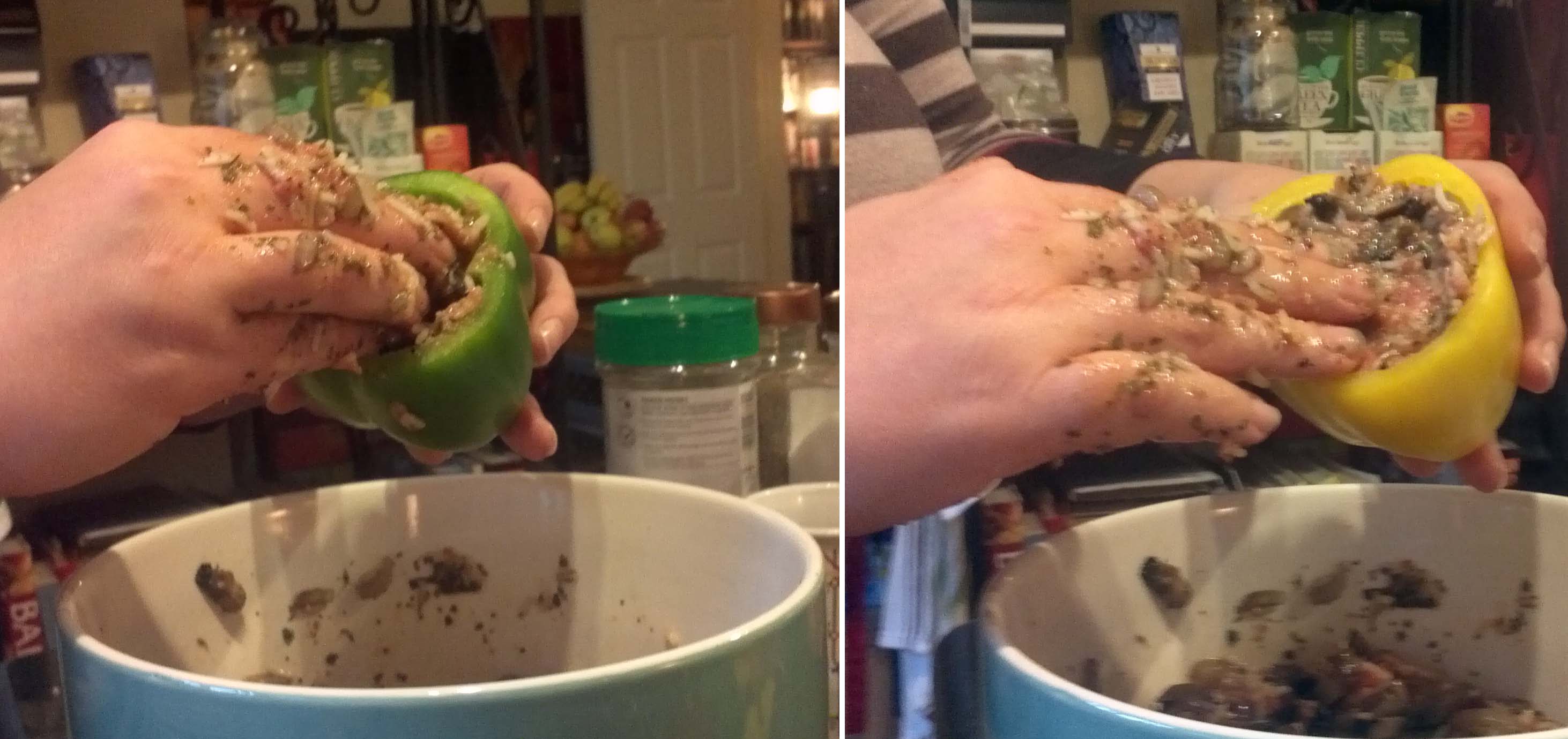 So the other day there I was hungry and as usual with no idea what to have for dinner when a distraction occurs, my dad calls… he is all glowing (I could almost feel it over the telephone lines) but what synchronicity as he starts telling me about some fantastic stuffed peppers he just made for his dinner. To make things worse he said “Just to prove how awesome they are I am sending you pictures”… I thought to myself “Great… just what I really need at this moment – some pictures of a yummy dinner”. He was right though his dinner did indeed look totally fantastic and what was even more impressive – they grew the peppers in their garden!