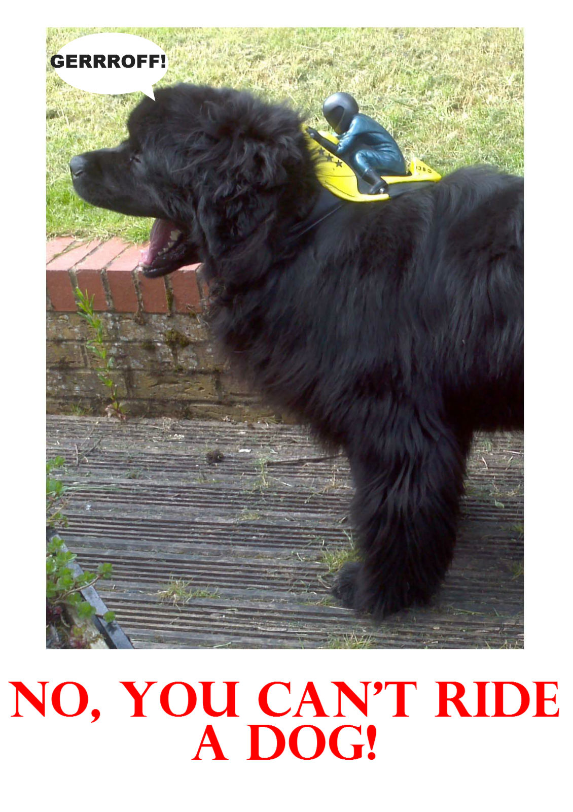 Your dog is gorgeous and I can’t believe that anyone seriously thinks they can ride a dog! Well done for making it clear why that’s not a good idea.